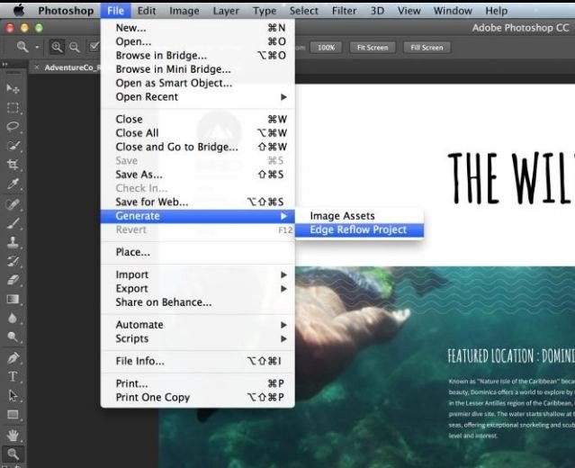 Με το Adobe Generator μπορείς να μετατρέψεις ένα αρχείο Photoshop σε ένα Edge Reflow project ή με άλλα λόγια να μετατρέψεις ένα σχέδιο σε ιστοσελίδα που μπορεί να αυξομειώσει αυτομάτως το μέγεθος της και να αναδιοργανώσει το περιεχόμενο της για μικρότερες ή μεγαλύτερες οθόνες (π.χ. smartphones, tablets, Retina).