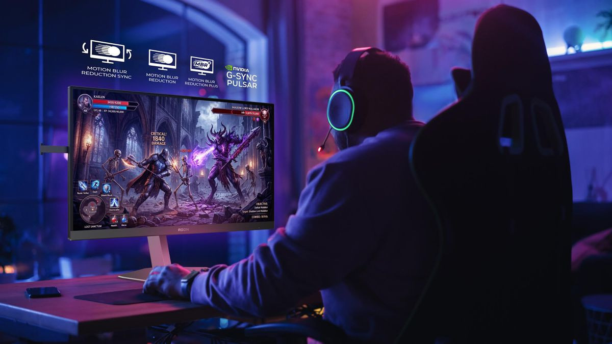 Για τους χρήστες που αναζητούν την απόλυτη flagship εμπειρία, η AGON by AOC προσφέρει την οθόνη AG276QSG2, η οποία κάνει χρήση της τεχνολογίας G-SYNC Pulsar της NVIDIA. Το Pulsar λειτουργεί με παρόμοια φιλοσοφία (rolling scan strobe), αλλά προσθέτει δυναμικό (adaptive) overdrive που προσαρμόζεται ανάλογα με την περιοχή της οθόνης και τον ρυθμό ανανέωσης.