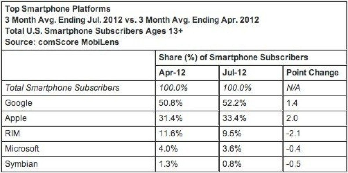 Η νέα τριμηνιαία ανάλυση της ComScore αναδεικνύει για ακόμα μία φορά το Android ως το mobile λειτουργικό σύστημα με το μεγαλύτερο μερίδιο στην αγορά των ΗΠΑ (αύξηση από 50.8% σε 52.2%), αλλά και το iOS δεν πάει πίσω, μιας και παρουσιάζει επίσης αύξηση από 31.4% σε 33.4%.