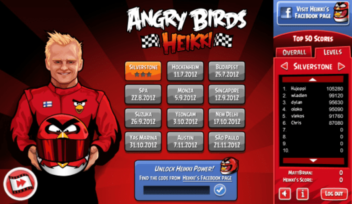 Μετά από αρκετό καιρό αναμονής η Rovio έκανε διαθέσιμη σήμερα την νέα έκδοση του δημοφιλούς παιχνιδιού Angry Birds σχετικά με τη Formula 1 με τίτλο "Angry Birds Heikki". Το παιχνίδι που αποτελείται από 12 πίστες είναι αφιερωμένο στον Φινλανδό οδηγό της Formula 1 Heikki Kovalainen, τον οποίο και η εταιρεία σπονσοράρει.
