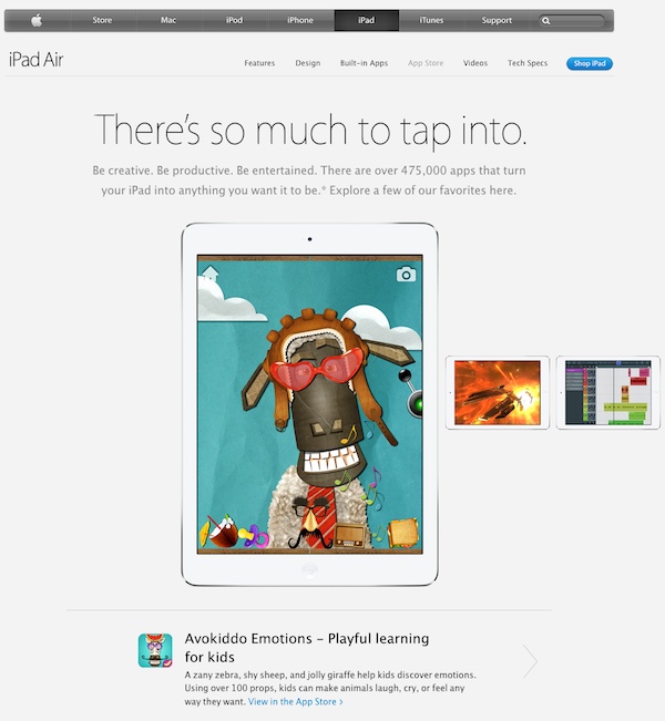 Την επιτυχία του Avokiddo Emotions ήρθε να επιβεβαιώσει η ίδια η Apple, επιλέγοντας το Avokiddo Emotions ως την Νο1 εφαρμογή για τα καινούρια iPad Air, στη σχετική σελίδα των προτεινόμενων εφαρμογών του App store.