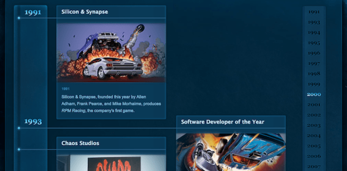 Στην επετειακή σελίδα των 20 χρόνων από την ίδρυση της Blizzard θα βρείτε ένα αναλυτικό timeline με τα σημαντικότερα γεγονότα που σχετίζονται με την εταιρεία από το 1991 όταν οι Mike Morhaime, Frank Pearce και Allen Adham ξεκίνησαν την Silicon & Synapse μέχρι σήμερα.