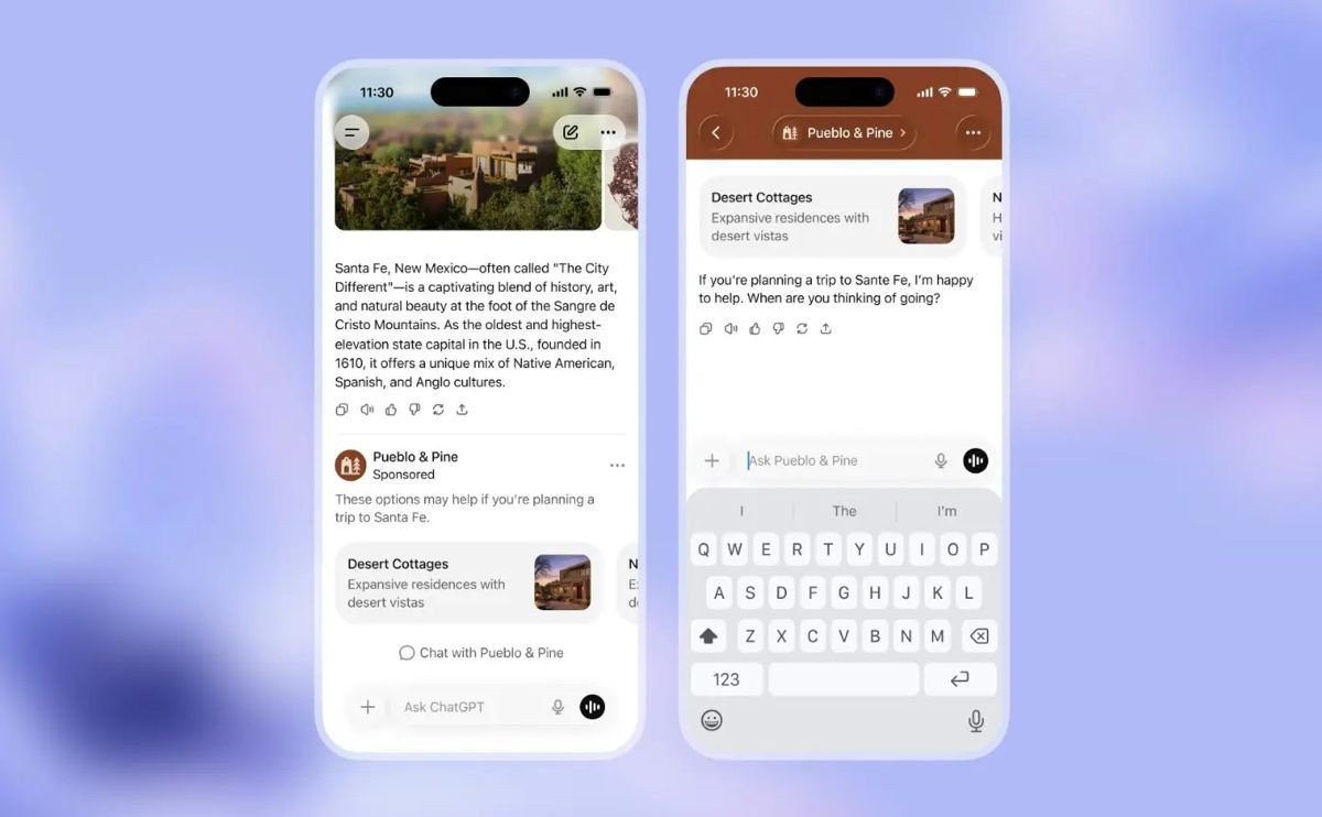 - Στοχευμένες προτάσεις στο τέλος της απάντησης: Όταν ένας χρήστης ρωτάει κάτι που έχει εμπορικό ενδιαφέρον, το ChatGPT θα εμφανίζει σχετικές διαφημίσεις στο κάτω μέρος της απάντησης. Για παράδειγμα, αν κάποιος ζητήσει «τα καλύτερα αξιοθέατα στη Ρώμη», το σύστημα μπορεί να εμφανίσει διακριτικά μια πρόταση για ξενοδοχεία στην ιταλική πρωτεύουσα. Οι διαφημίσεις αυτές θα φέρουν σαφή σήμανση ώστε να ξεχωρίζουν από το οργανικό περιεχόμενο που παράγει το AI.