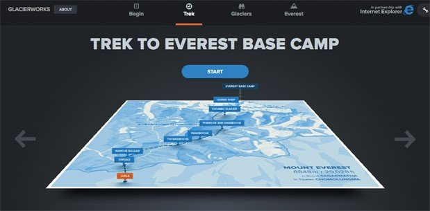 Η GlacierWorks, μη κερδοσκοπική εταιρεία που ιδρύθηκε από το διάσημο ορειβάτη και σκηνοθέτη David Breashears, ένωσε τις δυνάμεις της με τη Microsoft για να φέρει τo Έβερεστ στις οθόνες μας. To project ονομάζεται 'Everest: Rivers of Ice' και σου επιτρέπει να εξερευνήσεις την περιοχή μέσα από τον Internet Explorer.