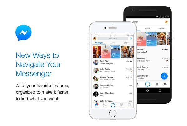 Η αρχική σελίδα του Facebook Messenger περιλαμβάνει τρεις καρτέλες για άμεση πρόσβαση στα μηνύματα, για να βλέπεις ποιοι φίλοι σου είναι διαθέσιμοι τη δεδομένη χρονική στιγμή και για να έχεις πρόσβαση στις ομαδικές συνομιλίες με ευκολία. Ακόμη, έχει προστεθεί νέα μπάρα στο κάτω μέρος με εικονίδια που σε μεταφέρουν στην αρχική σελίδα, στις κλήσεις, στην κάμερα, στα games και στις επαφές σου. Σε περίπτωση που δεις μια κόκκινη κουκίδα επάνω σε κάποιο από αυτά τα εικονίδια, τότε σημαίνει ότι έχεις νέα ενημέρωση.