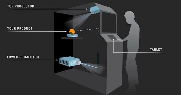 Στο video που ακολουθεί, η μαγική συσκευή προβάλλει ένα αυτοκίνητο και στη συνέχεια ο χρήστης αλλάζει τα χαρακτηριστικά του πανεύκολα από το tablet του: