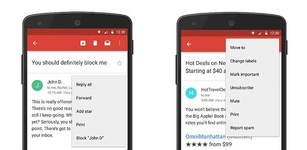 Η Google προχωρά στην προσθήκη δύο νέων επιλογών στην υπηρεσία Gmail, δίνοντας μας πλέον τη δυνατότητα να μπλοκάρουμε άμεσα συγκεκριμένες διευθύνσεις ή να διαγράφουμε τη συνδρομή μας από κάποιο newsletter με ένα κλικ. Οι αποστολές από μπλοκαρισμένες διευθύνσεις θα πηγαίνουν απευθείας στον φάκελο Spam και φυσικά θα υπάρχει η δυνατότητα επαναφοράς από τις ρυθμίσεις.