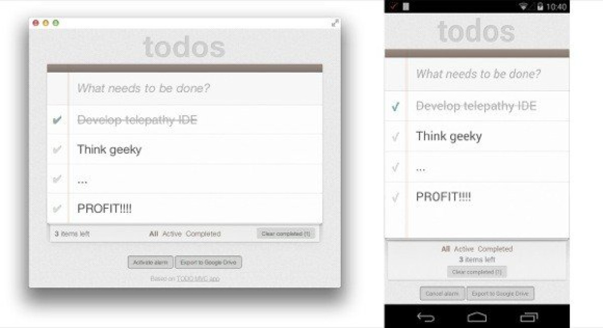 Με το εργαλείο αυτό μπορείτε να μετατρέψετε ουσιαστικά τις Chrome εφαρμογές σας σε native apps και να τις διανείμετε στο App Store και Google Play. Ένα παράδειγμα μιας Chrome εφαρμογής To-Do που τρέχει στο OS X και στο Android μπορείτε να δείτε στην εικόνα παραπάνω.