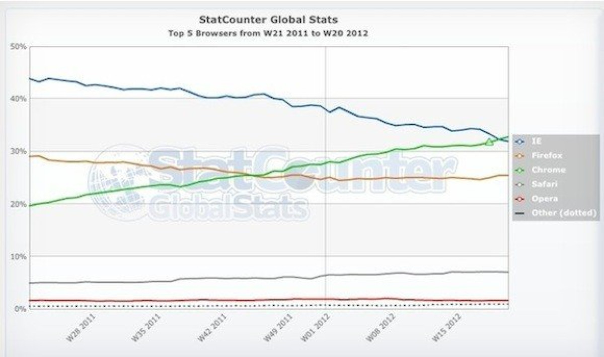Σύμφωνα με την Statcounter ο Chrome της Google είναι για πρώτη φορά πρώτος σε χρήση παγκοσμίως. Συγκεκριμένα, για την βδομάδα του Μαΐου μεταξύ 14 και 20 του μηνός ο Chrome σημείωσε για πρώτη φορά πρωτιά για εφτά συνεχόμενες μέρες.