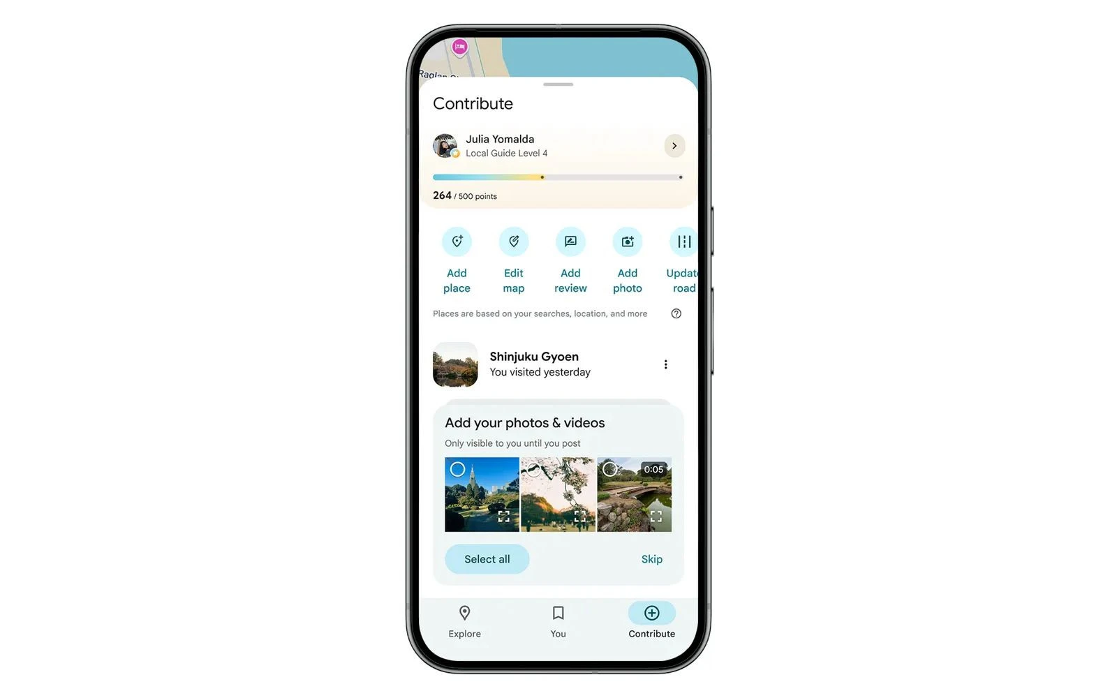 Το Google Maps αναβαθμίζει την καρτέλα Contribute ενσωματώνοντας τρεις νέες λειτουργίες: την αυτόματη πρόταση φωτογραφιών από το τοπικό αρχείο της συσκευής, τη δημιουργία λεζαντών μέσω τεχνητής νοημοσύνης (Gemini) και ένα νέο σύστημα επιβράβευσης των Local Guides με χρυσά εμβλήματα. Οι λειτουργίες διατίθενται ήδη σε Android και iOS, με τα AI εργαλεία να υποστηρίζουν αρχικά την αγγλική γλώσσα.