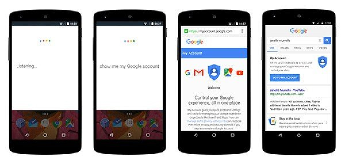 Ακόμη, ο χρήστης θα μπορεί να εισέρχεται στο "My Account" με τη φωνητική εντολή "OK Google, show me my Google account", η οποία σύντομα θα υποστηρίζεται σε περισσότερες γλώσσες. Τέλος, αν ο χρήστης πραγματοποιήσει αναζήτηση με το όνομα του, τότε θα του εμφανίζεται συντόμευση για το "My Account", αρκεί να είναι συνδεδεμένος στο Google account του.