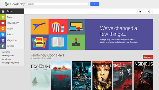 Οι χρήστες μπορούν ακόμα να αγοράζουν βιβλία, να εγγράφονται σε περιοδικά, να νοικιάζουν και να αγοράζουν video, να κατεβάζουν Android εφαρμογές για το smartphone ή το tablet τους και πολλά άλλα, μόνο που τώρα η αναζήτηση περιεχομένου και η πλοήγηση είναι ευκολότερη. Τα screenshots των εφαρμογών είναι πλέον μεγαλύτερα, στο αριστερό μέρος της σελίδας υπάρχει menu sidebar και οι εφαρμογές φορτώνουν γρηγορότερα.