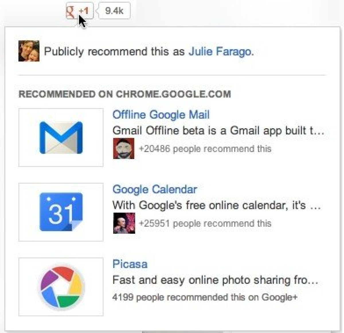 To Google +1 Button θα δουλεύει πλεόν ως εξής: Κάθε φορά που περνάτε το ποντίκι σας από πάνω του, θα εμφανίζονται στην οθόνη σας προτάσεις σχετικού περιεχομένου από τους φίλους σας ή άλλους χρήστες της ιστοσελίδας. Το ενδιαφέρον μάλιστα είναι ότι για να δείτε τις προτάσεις αυτές δε θα χρειάζεται να είστε συνδεδεμένοι στο Google+ ούτε καν να διατηρείτε λογαριασμό στο κοινωνικό δίκτυο.