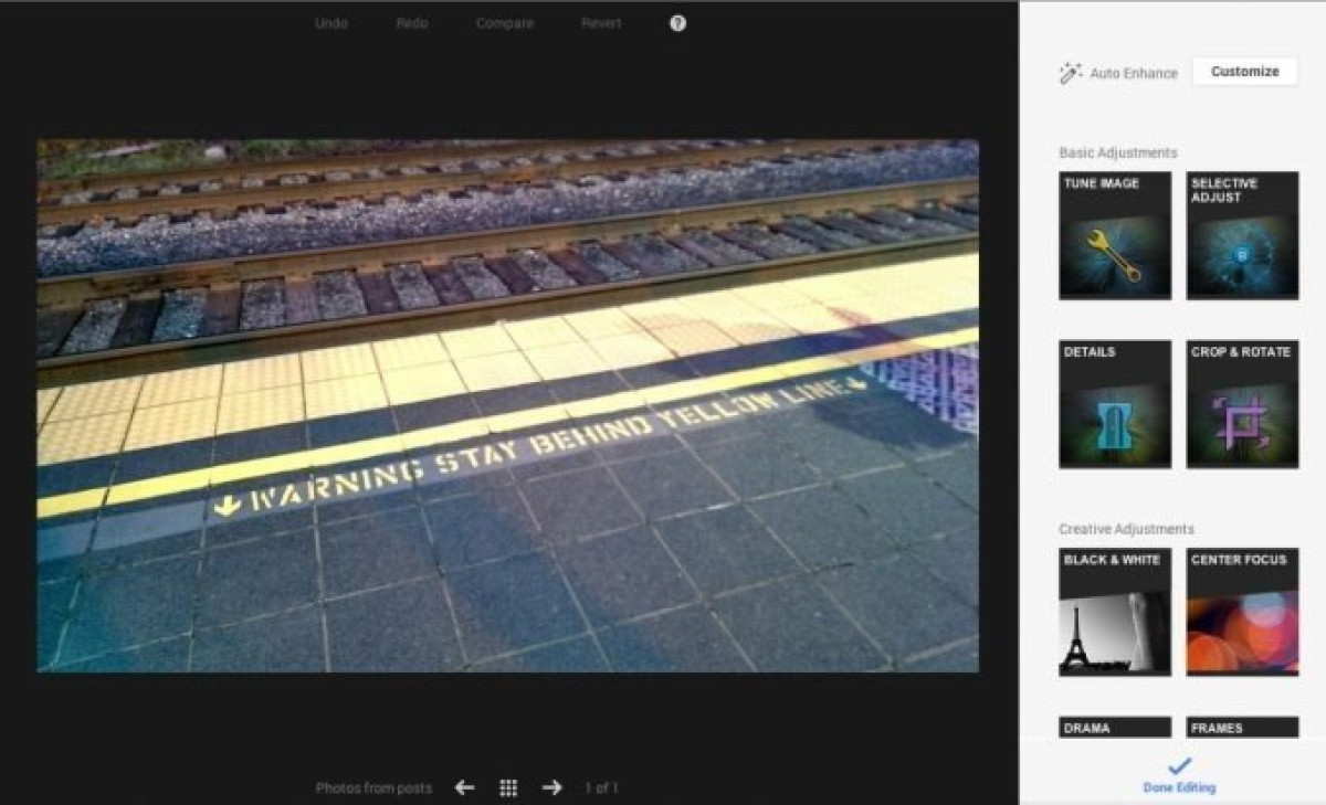 Ένα χρόνο μετά την εξαγορά της εφαρμογής φωτογραφιών Snapseed η Google αποφάσισε να εμπλουτίσει τη desktop έκδοση του Google+ με νέα εργαλεία photo editing, όπως Auto Enhance, adjust editing και φίλτρα τα οποία κάνουν χρήση της τεχνολογίας Native Client του Google Chrome.