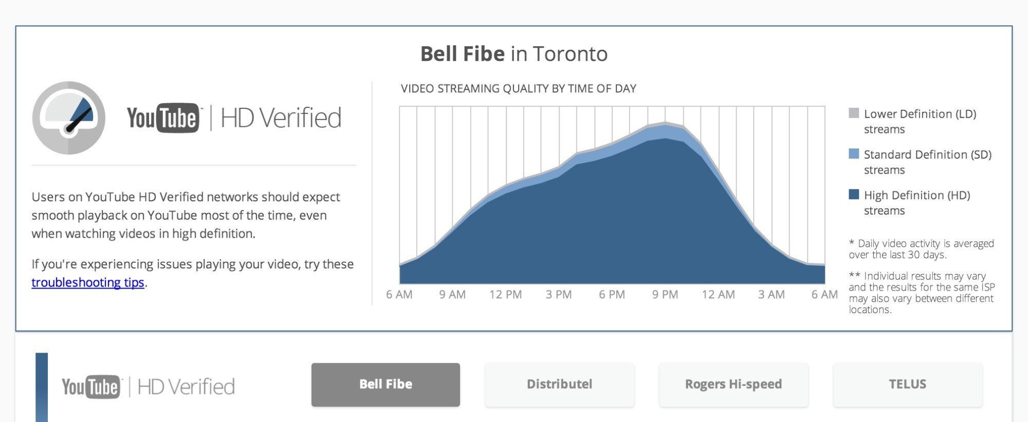 Η Google βαθμολογεί τους παρόχους Internet με βάση το πόσο καλά τα δίκτυά τους μπορούν να streamάρουν βίντεο υψηλής ποιότητας στον χρήστη από το YouTube. Σε πρακτικούς όρους, εάν η μεταφορά δεδομένων είναι επαρκής το 90 τοις εκατό των περιπτώσεων, τότε ο πάροχος σε εκείνη την περιοχή θα θεωρείται 'YouTube HD Verified'.