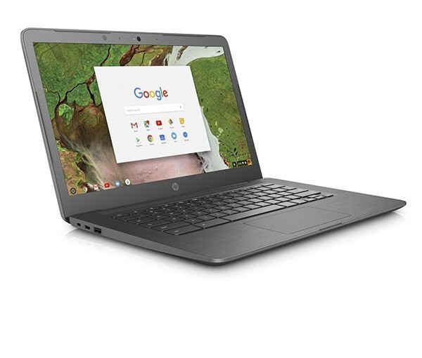 Το HP Chromebook 14 G5 είναι μια πιο μεγάλη έκδοση με οθόνη 14.1'' Full HD (1920 x 1080), επεξεργαστή Intel Celeron N3350/N3450 7ης γενιάς, έως 8GB RAM και 64GB αποθηκευτικό χώρο, αλλά η κατασκευή του δεν είναι θωρακισμένη.