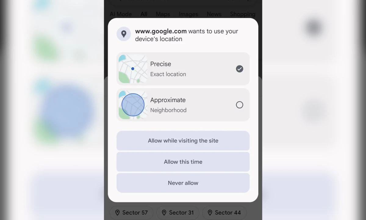 Σήμερα, όταν ένα site ζητάει πρόσβαση στην τοποθεσία, ο Chrome μπορεί να του δώσει πρακτικά την ακριβή θέση σας με ακρίβεια μερικών μέτρων, αρκεί να έχετε δώσει σχετική άδεια στη συσκευή. Το νέο toggle όμως κάνει κάτι διαφορετικό: ακόμα κι αν ο browser έχει πλήρη άδεια σε επίπεδο λειτουργικού, επιλέγει να μην τη μοιραστεί. Αντί για αυτό, δίνει στο site ένα «περίπου εδώ» σημείο, αρκετό για βασικές λειτουργίες αλλά όχι για λεπτομερή παρακολούθηση.