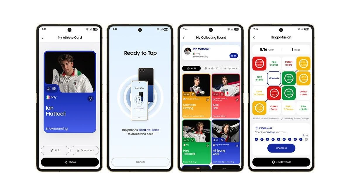 - Galaxy Athlete Card: Προσφέρει έναν ψηφιακό τρόπο ανταλλαγής προφίλ, συλλογής καρτών και συμμετοχής σε διαδραστικές δραστηριότητες, ενισχύοντας την αίσθηση της κοινότητας μεταξύ των αντιπροσωπειών.