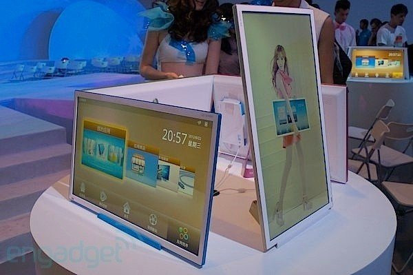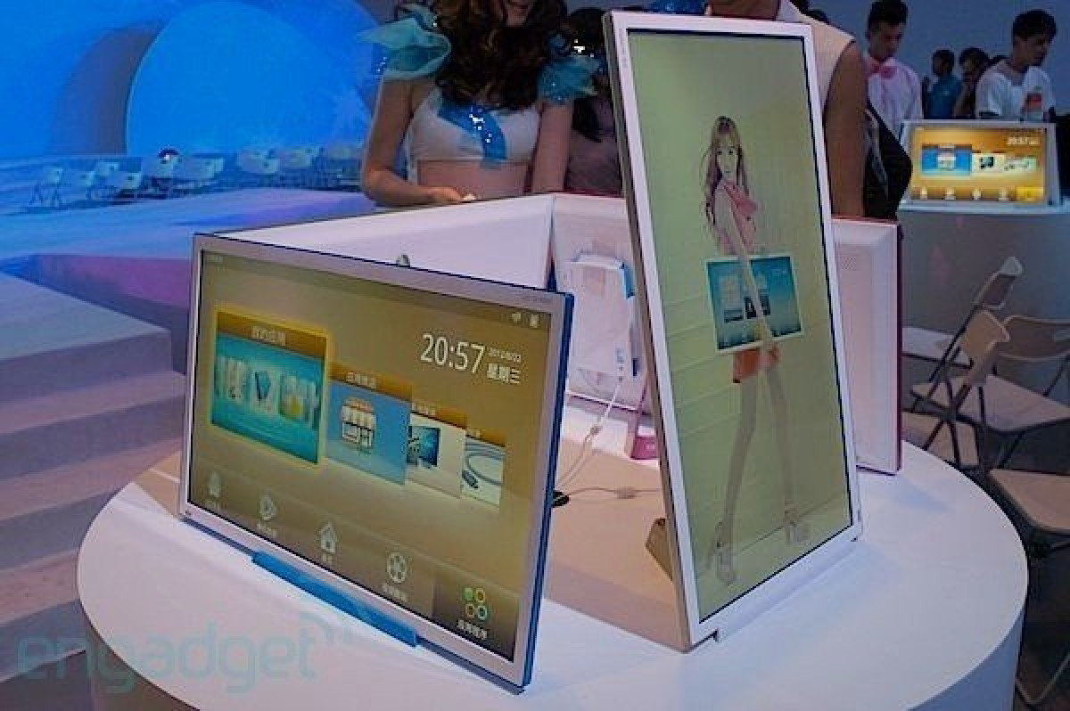 Πρόκειται για την iCE SCREEN, μια 26'' Smart TV (ανάλυση 1366 x 768) προϊόν συνεργασίας των Tencent και TCL Multimedia, η οποία θα λέγαμε ότι μοιάζει περισσότερο με τεράστιο tablet (χωρίς οθόνη αφής βέβαια) παρά με τηλεόραση, καθώς μπορεί να τοποθετηθεί κάθετα ή οριζόντια!