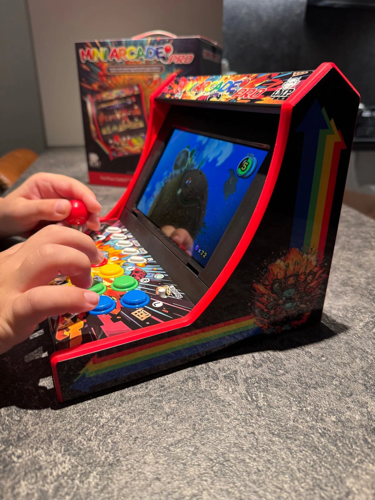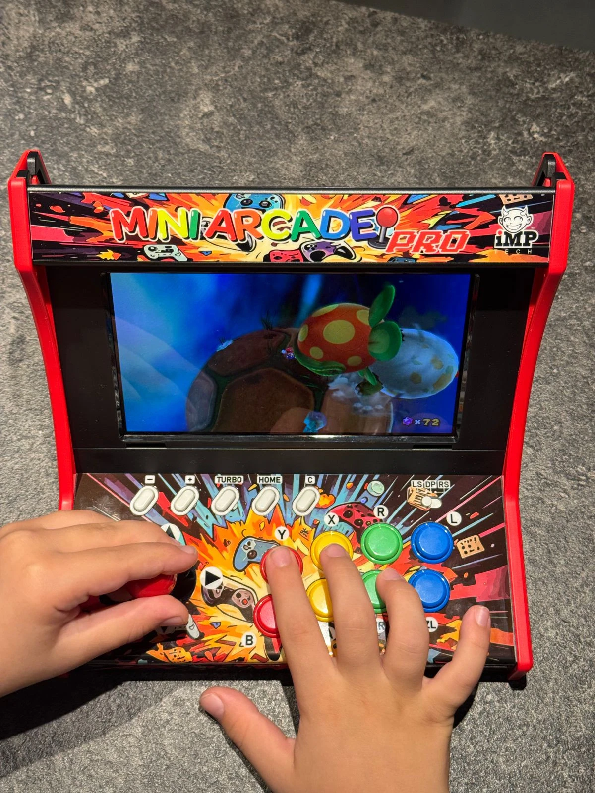 Το πιο ενδιαφέρον, όμως, ήταν η εκπαιδευτική διάσταση που απέκτησε η διαδικασία. Για ένα παιδί που έχει μεγαλώσει με οθόνες αφής και αναλογικούς μοχλούς, η αυστηρότητα και η ακρίβεια του ψηφιακού μοχλού ήταν μια αποκάλυψη. Το iMP λειτούργησε ως χρονομηχανή. Καθίσαμε δίπλα-δίπλα και του εξήγησα πώς παίζαμε εμείς στα ηλεκτρονικά της γειτονιάς. Το γεγονός ότι η κονσόλα είναι «κλειδωμένη» μέσα στο πλαίσιο του iMP, δημιουργεί μια οπτική γωνία που αναγκάζει τον παίκτη να καθίσει σωστά, να συγκεντρωθεί στην οθόνη και να χειριστεί τα πλήκτρα με όλο το χέρι και όχι μόνο με τους αντίχειρες. Αυτή η σωματική εμπλοκή με το παιχνίδι είναι κάτι που λείπει από το σύγχρονο gaming και το iMP την επαναφέρει θριαμβευτικά.