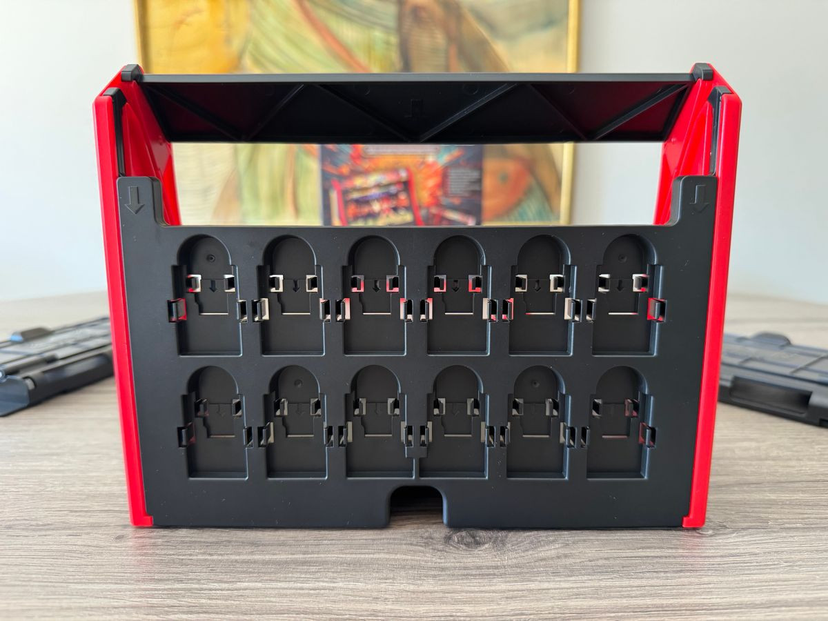 Η υποδοχή για την κονσόλα είναι σχεδιασμένη έξυπνα. Δέχεται άνετα τόσο τα κλασικά Nintendo Switch και OLED, όσο και το Switch 2. Αυτό το στοιχείο της συμβατότητας προσδίδει τεράστια αξία στην αγορά, καθώς θα παραμείνει λειτουργικό για πολλά χρόνια. Η κονσόλα γλιστράει μέσα σε ειδικούς οδηγούς και κουμπώνει στην USB-C θύρα με ικανοποιητική ασφάλεια, χωρίς να νιώθεις ότι ασκείς περιττή πίεση στη θύρα φόρτισης της συσκευής.