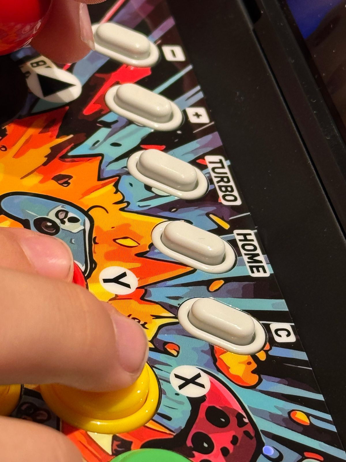 Τα οκτώ κύρια κουμπιά είναι μεγάλα, με καμπύλη επιφάνεια που αγκαλιάζει τα δάχτυλα, και διάταξη που θυμίζει τα κλασικά arcade των προηγούμενων δεκαετιών, αν και προσαρμοσμένη στο μέγεθος της συσκευής. Η επαναφορά τους είναι γρήγορη, επιτρέποντας το rapid fire χωρίς κόπο. Ωστόσο, εδώ εντοπίζεται και μια μικρή σχεδιαστική ιδιαιτερότητα που ίσως ξενίσει τους purists: τα κουμπιά L και R βρίσκονται δίπλα στα κυρίως πλήκτρα, ενώ τα ZL και ZR έχουν τοποθετηθεί ως μικρότερα κουμπιά λειτουργιών στο πάνω μέρος. Αυτό απαιτεί μια μικρή περίοδο προσαρμογής, ειδικά για παιχνίδια που χρησιμοποιούν και τα τέσσερα shoulder buttons ενεργά, αλλά για τα περισσότερα retro και fighting games, η διάταξη είναι ιδανική.