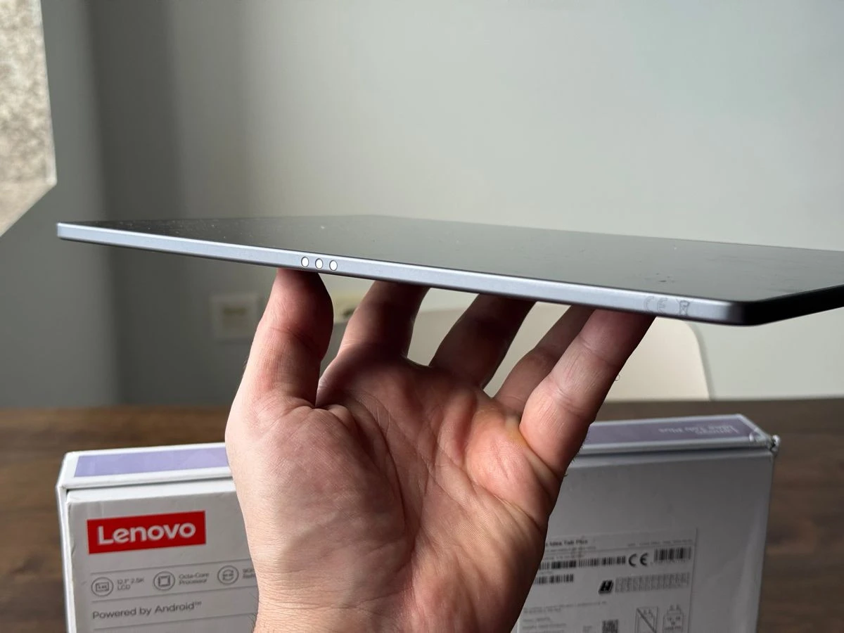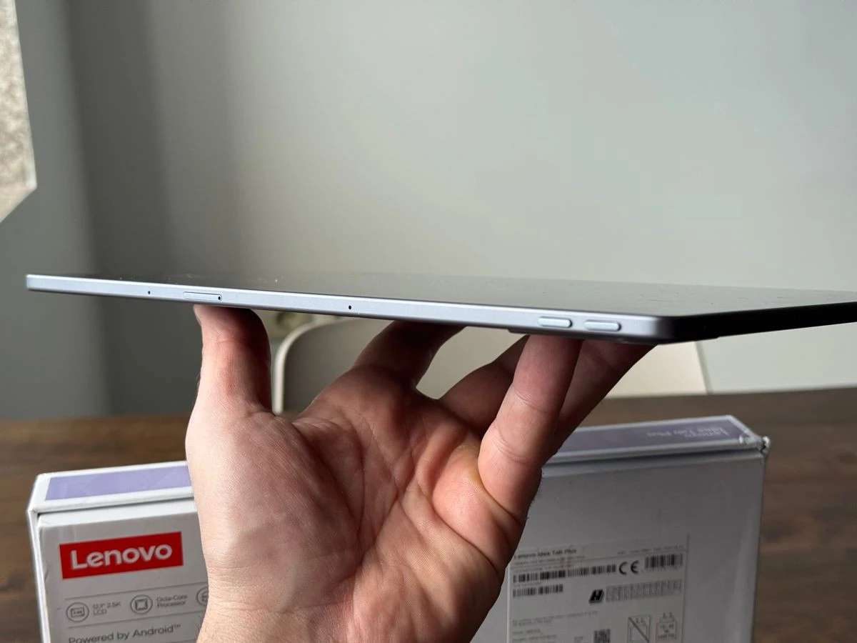 Πιάνοντας το Lenovo Idea Tab Plus στα χέρια σου για πρώτη φορά, η εντύπωση που αποκομίζεις είναι αδιαμφισβήτητα θετική και έρχεται σε πλήρη αντίθεση με την τιμή του. Αντί να καταφύγει στις εύκολες και συνηθισμένες πλαστικές λύσεις που κυριαρχούν στη μεσαία κατηγορία, η κατασκευάστρια εταιρεία επέλεξε να ντύσει τη συσκευή με ένα εξ ολοκλήρου αλουμινένιο σώμα. Αυτή η μεταλλική πλάτη, με το εξαιρετικά προσεγμένο ματ φινίρισμα, όχι μόνο αποπνέει μια άμεση αίσθηση στιβαρότητας και πολυτέλειας, αλλά αποδεικνύεται στην καθημερινότητα και απρόσμενα πρακτική. Σε αντίθεση με τις γυαλιστερές επιφάνειες, η ματ υφή απωθεί αποτελεσματικά τις ενοχλητικές δαχτυλιές και τις μουτζούρες που συχνά καταστρέφουν την αισθητική των φορητών συσκευών.