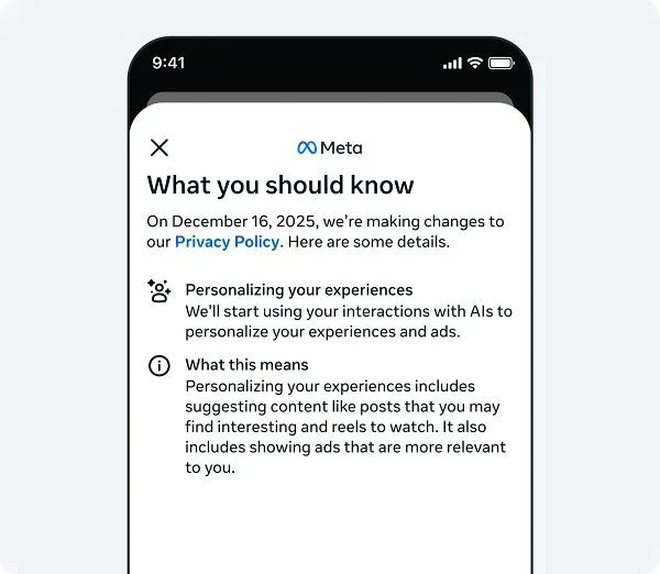 Το επίμαχο σημείο είναι η επικείμενη ανανέωση της Πολιτικής Ιδιωτικότητας της Meta, η οποία είχε ανακοινωθεί ήδη από τον Οκτώβριο και τίθεται σε ισχύ στις 16 Δεκεμβρίου 2025. Στο κείμενο η εταιρεία εξηγεί ότι θα αξιοποιεί πιο εκτεταμένα τα δεδομένα που προκύπτουν από τις αλληλεπιδράσεις των χρηστών με τις λειτουργίες Meta AI. Τέτοιες πληροφορίες χρησιμοποιούνται ώστε οι προτάσεις περιεχομένου – όπως Reels, προσωποποιημένες προτάσεις ή διαφημίσεις – να γίνονται πιο σχετικές. Δεν υπάρχει, όμως, ούτε ένα σημείο που να αναφέρεται σε σάρωση ιδιωτικών συζητήσεων.