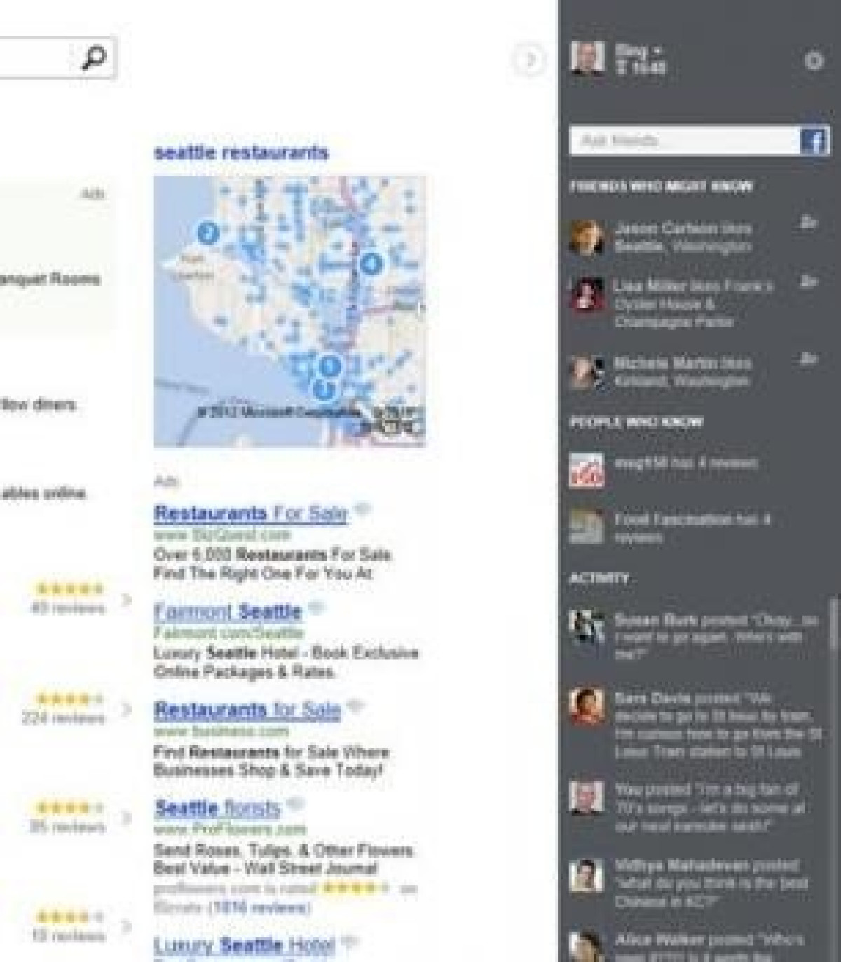 Επιπλέον, η κοινωνική μπάρα θα εμφανίζει προτάσεις από "ειδικούς" με γνώση επάνω σε συγκεκριμένα θέματα, ανάλογα με τα posts που έχουν δημοσιεύσει σε Facebook, Twitter, Foursquare, Quora, LinkedIn, Blogger και Google+. Τέλος, στο κάτω μισό της μπάρας θα υπάρχει μια συνεχής ροή ειδήσεων από φίλους που έχουν μοιραστεί κάτι από το Bing.