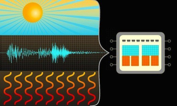 Ομάδα ερευνητών του MIT κατάφερε και δημιούργησε ένα νέο τσιπ, το οποίο μπορεί να συλλέξει ενέργεια από τρεις διαφορετικές πηγές ταυτόχρονα: φως, θερμότητα και δονήσεις. Το μυστικό κρύβεται σε ένα πολύπλοκο σύστημα ελέγχου που είναι ικανό να εναλλάσσει αστραπιαία τις πηγές αυτές ώστε να μην χαραμίζεται καθόλου ενέργεια.