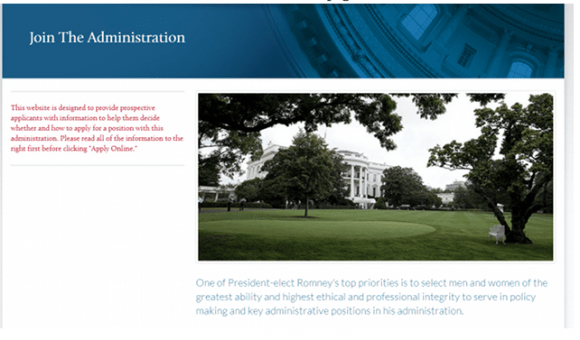 Σε αντίθετη περίπτωση, αν δηλαδή νικητής της εκλογικής αναμέτρησης ήταν ο Romney, το σίγουρο είναι ότι θα χρειαζόταν μια ιστοσελίδα και η οποία θα έπρεπε σαφώς να είναι έτοιμη εκ των προτέρων...
