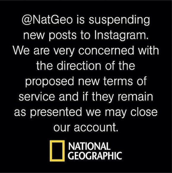 Παρόλα αυτά το National Geographic αποφάσισε να σταματήσει τη δημοσίευση φωτογραφιών στο Instagram δημοσιεύοντας την εικόνα που βλέπετε παραπάνω και δηλώνοντας προβληματισμένο σχετικά με την κατεύθυνση των νέων όρων χρήσης. Υπερβολή; Μάλλον, αλλά ο χρόνος θα δείξει.