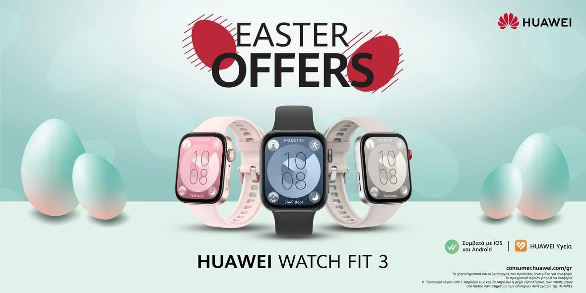 - Η Huawei ανακοίνωσε πασχαλινές προσφορές για την ελληνική αγορά, με ισχύ από 1 έως 30 Απριλίου ή μέχρι εξαντλήσεως των αποθεμάτων στο επίσημο δίκτυο συνεργατών.