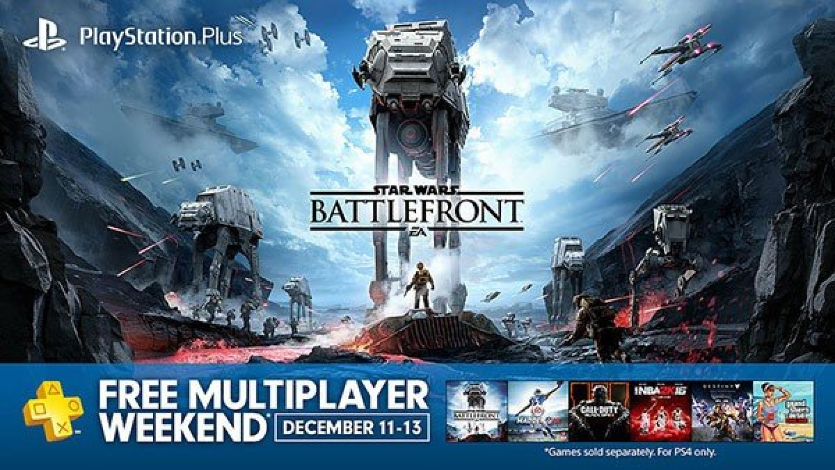 "Φωνάξτε τους φίλους σας, αρπάξτε το DualShock 4 και ετοιμαστείτε για multiplayer δράση αυτό το Σαββατοκύριακο. Προσφέρουμε δωρεάν πρόσβαση στο multiplayer για όλους τους κατόχους PlayStation 4 μέσα από την υπηρεσία PlayStation Plus. Ο καλύτερος τόπος για να δοκιμάσετε το πρώτο δωρεάν DLC του Star Wars: Battlefront πριν την πρεμιέρα του Star Wars: The Force Awakens!