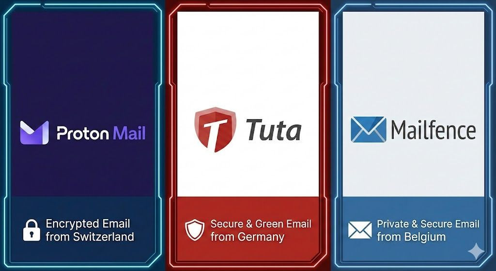 Οι κορυφαίες ευρωπαϊκές εναλλακτικές του Gmail είναι τα Proton Mail (Ελβετία), Tuta (Γερμανία), Infomaniak (Ελβετία) και Mailfence (Βέλγιο). Αυτοί οι πάροχοι εξασφαλίζουν end-to-end κρυπτογράφηση, φιλοξενία δεδομένων αυστηρά εντός ευρωπαϊκών συνόρων και πλήρη εναρμόνιση με το αυστηρό πλαίσιο GDPR, προστατεύοντας την επικοινωνία από τη συλλογή δεδομένων για διαφημιστικούς σκοπούς.