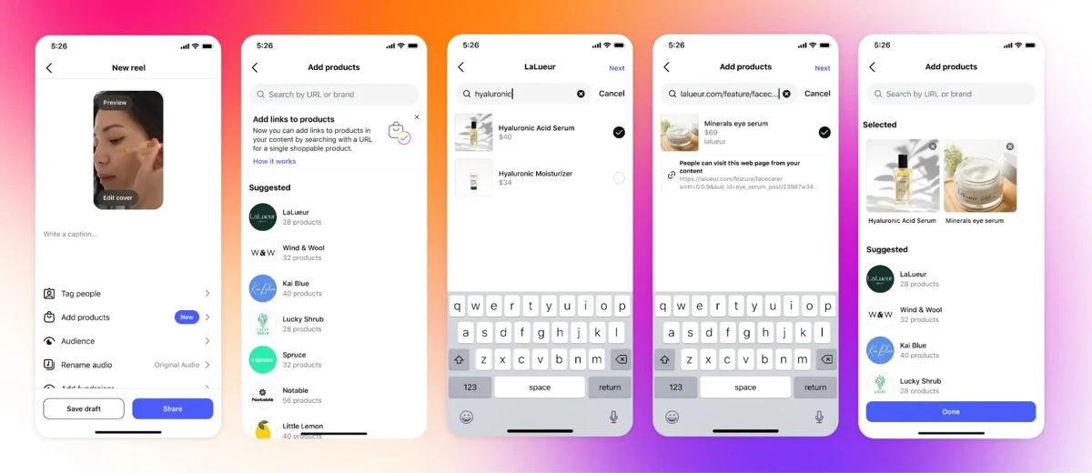 - Η Meta ενσωματώνει εγγενή (native) affiliate links απευθείας σε Instagram Reels και Facebook posts, μετατρέποντας το περιεχόμενο σε άμεσο σημείο πώλησης.