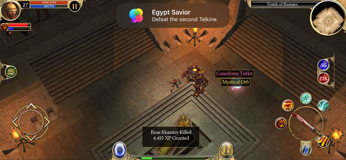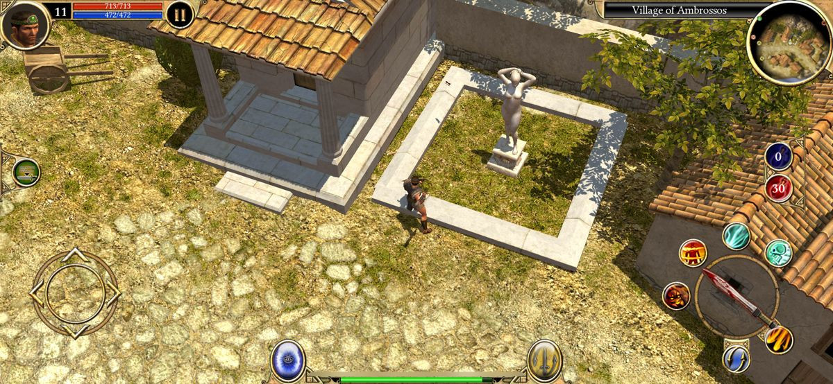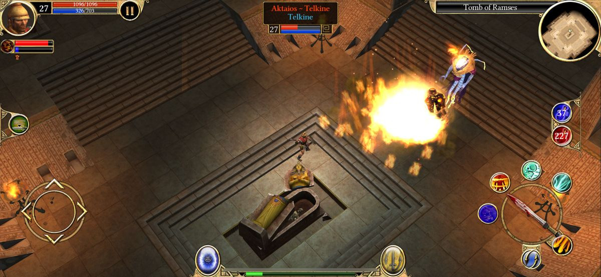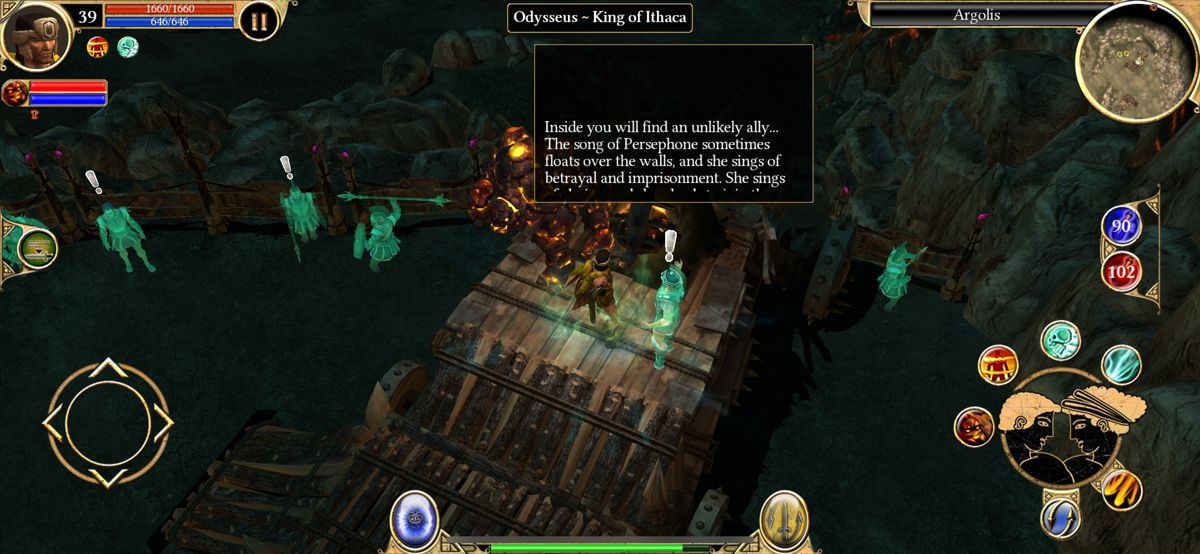 Το user interface έχει επίσης επανασχεδιαστεί για τις μικρότερες οθόνες, με τις μπάρες δεξιοτήτων και τα μενού να είναι προσβάσιμα με τρόπο που δεν καταλαμβάνει πολύτιμο χώρο. Η διαχείριση του inventory, αν και λειτουργική, παραμένει πιο δύσχρηστη από ό,τι στον υπολογιστή, απαιτώντας περισσότερα "taps" και "drags". Στον τεχνικό τομέα, το παιχνίδι αποδίδει εξαιρετικά στις σύγχρονες συσκευές iOS, με σταθερό ρυθμό καρέ και γρήγορους χρόνους φόρτωσης. Τα γραφικά, αν και προφανώς δείχνουν την ηλικία τους με τα πολυγωνικά μοντέλα και τις απλές υφές, διατηρούν μια καλλιτεχνική γοητεία χάρη στον φωτισμό και τη ζωντανή χρωματική παλέτα, ενώ η υψηλότερη ανάλυση των σύγχρονων οθονών τα κάνει να φαίνονται πιο καθαρά από ποτέ.