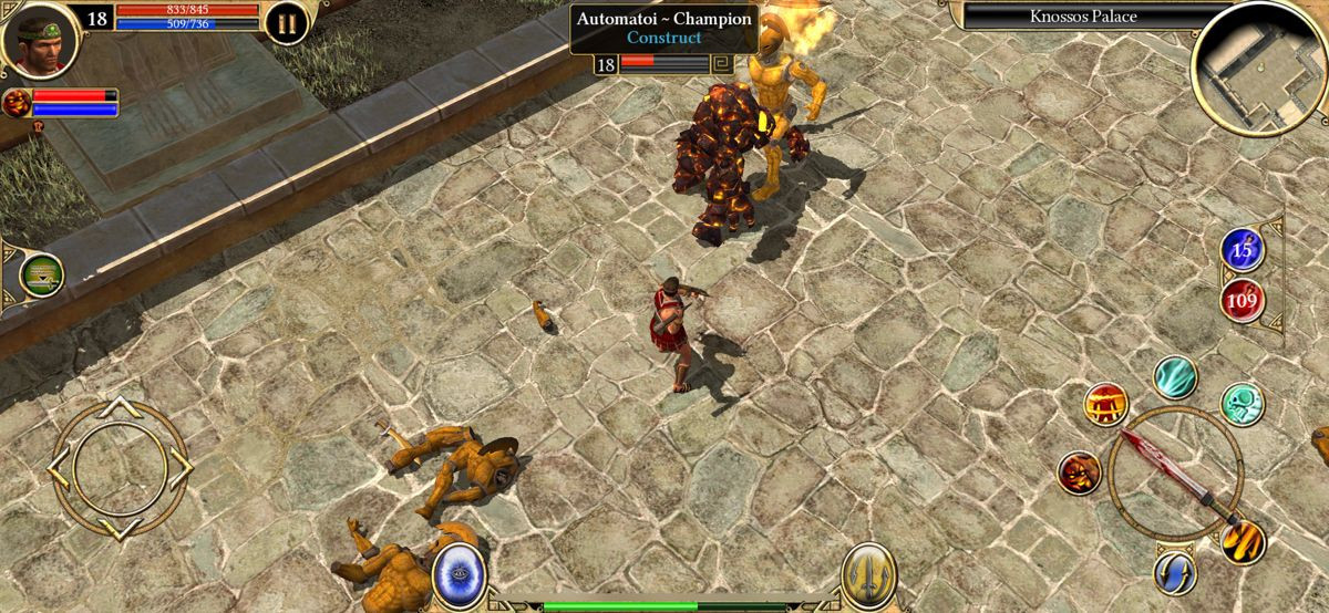 Παρά τα αδιαμφισβήτητα προτερήματά του, το Titan Quest δεν είναι άτρωτο στις φθορές του χρόνου και τις προκλήσεις της πλατφόρμας. Η ηλικία του είναι εμφανής σε ορισμένους τομείς του σχεδιασμού του. Η δομή των αποστολών είναι συχνά υπερβολικά απλοϊκή, ακολουθώντας το μοτίβο "πήγαινε στο σημείο Χ, σκότωσε το τέρας Υ, μίλα στον NPC Ζ". Οι χάρτες, αν και ατμοσφαιρικοί, είναι τεράστιοι και μερικές φορές μπορεί να μοιάζουν άδειοι, οδηγώντας σε εκτεταμένα διαστήματα περπατήματος χωρίς ιδιαίτερη δράση, κάτι που μπορεί να γίνει κουραστικό σε μια φορητή συσκευή. Η μεγαλύτερη αχίλλειος πτέρνα, όμως, παραμένει ο χειρισμός. Σε υψηλότερα επίπεδα δυσκολίας, όπου η ακριβής τοποθέτηση, η γρήγορη αντίδραση και η σωστή στόχευση είναι ζητήματα ζωής και θανάτου, η έλλειψη ακρίβειας της οθόνης αφής μπορεί να οδηγήσει σε άδικους θανάτους και στιγμές μεγάλου εκνευρισμού. Επιπλέον, ο κεντρικός βρόχος του gameplay – σκοτώνω, μαζεύω loot, ανεβαίνω επίπεδο – ενώ είναι εξαιρετικά εθιστικός, μπορεί να γίνει επαναλαμβανόμενος για παίκτες που αναζητούν μια πιο πλούσια αφηγηματική εμπειρία. Η ιστορία, αν και ατμοσφαιρική, λειτουργεί περισσότερο ως πρόφαση παρά ως κίνητρο, και η έλλειψη ουσιαστικής εξέλιξης των χαρακτήρων ή ηθικών διλημμάτων μπορεί να αποξενώσει όσους έχουν συνηθίσει στα σύγχρονα, πιο κινηματογραφικά RPG.