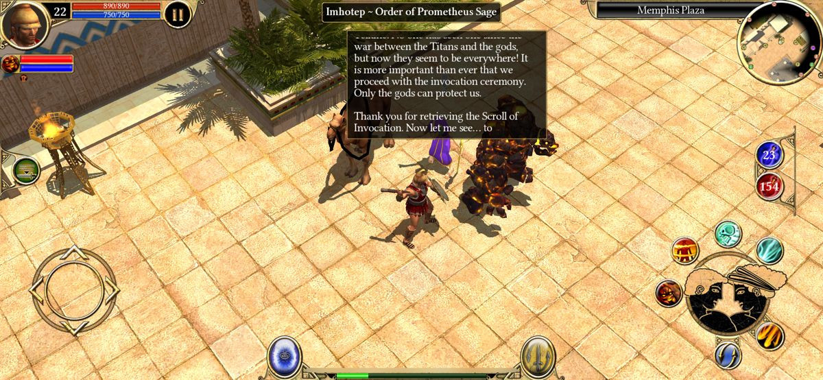 Αυτό που κάνει την ιστορία του Titan Quest να ξεχωρίζει είναι η απίστευτη αίσθηση του ταξιδιού. Η περιπέτεια ξεκινά από τα ταπεινά λιβάδια της Ελλάδας, κοντά στις Σπάρτη, και ξεδιπλώνεται σαν ένας αρχαίος πάπυρος, οδηγώντας τον παίκτη μέσα από εμβληματικές τοποθεσίες όπως οι Δελφοί, η Αθήνα, οι Κνωσός, και στη συνέχεια στις καυτές άμμους της Αιγύπτου, με τις πυραμίδες της Γκίζας και τις όχθες του Νείλου, για να καταλήξει στα εξωτικά τοπία του Δρόμου του Μεταξιού στην Ανατολή. Κάθε περιοχή είναι σχολαστικά σχεδιασμένη για να αποπνέει την ατμόσφαιρα του αντίστοιχου πολιτισμού, με μοναδική αρχιτεκτονική, χλωρίδα και, φυσικά, πανίδα. Η μάχη ενάντια σε Σάτυρους και Κενταύρους κάτω από την Ακρόπολη, η αναμέτρηση με γιγάντιους σκορπιούς και ζωντανές μούμιες στις αιγυπτιακές κρύπτες, και η σύγκρουση με Τερακότινους στρατιώτες στην Κίνα, προσδίδουν μια απαράμιλλη αίσθηση μυθολογικής αυθεντικότητας. Το παιχνίδι λειτουργεί σαν ένα διαδραστικό μάθημα μυθολογίας, όπου κάθε τέρας και κάθε τοποθεσία μοιάζει να έχει ξεπηδήσει από τις σελίδες ενός επικού ποιήματος.