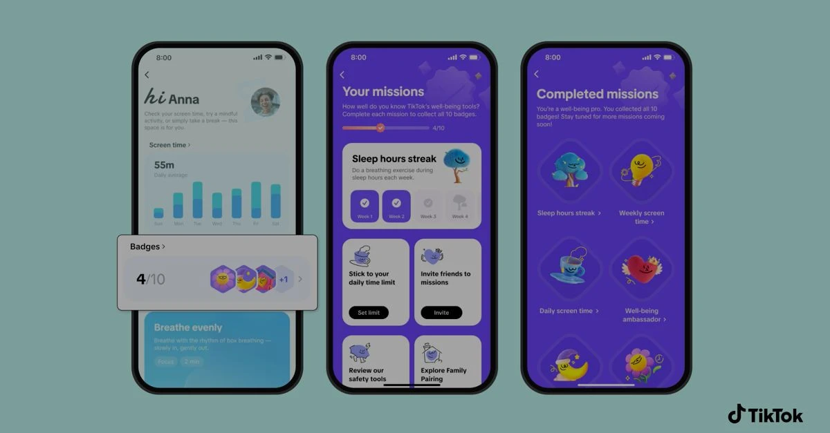 Για να κερδίσει κάποιος ένα badge, πρέπει να ολοκληρώσει συγκεκριμένες «αποστολές». Η πρώτη αφορά τις ώρες ύπνου: αποφυγή χρήσης της εφαρμογής τη νύχτα. Άλλη αποστολή σχετίζεται με τη χρήση του affirmation journal ή των εργαλείων χαλάρωσης. Επιπλέον, υπάρχει badge για όσους θέτουν ημερήσιο όριο χρήσης και το τηρούν, καθώς και για εκείνους που βλέπουν το εβδομαδιαίο report χρήσης ή προσκαλούν φίλους να συμμετάσχουν στις ίδιες αποστολές. Το TikTok, σε αυτή τη φάση, μοιάζει να εφαρμόζει τεχνικές game design με σκοπό όχι να αυξήσει τη χρήση, αλλά να τη μειώσει με ελεγχόμενο τρόπο.