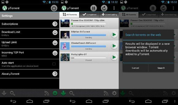 Μέσα από την εφαρμογή μπορείτε να αναζητήσετε torrents, να επιλέξετε συγκεκριμένα αρχεία για download μέσα από κάποιο torrent, να seedάρετε και να προσθέσετε RSS feeds, χωρίς κανέναν περιορισμό χώρου ή ταχύτητας, αλλά θα πρέπει να είστε προσεκτικοί με το πρόγραμμα data του παρόχου σας.