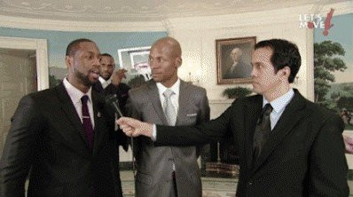 - Τον Lebron που λέει "in your face" στον Erik Spoelstra που εκτελεί χρέη "δημοσιογράφου".