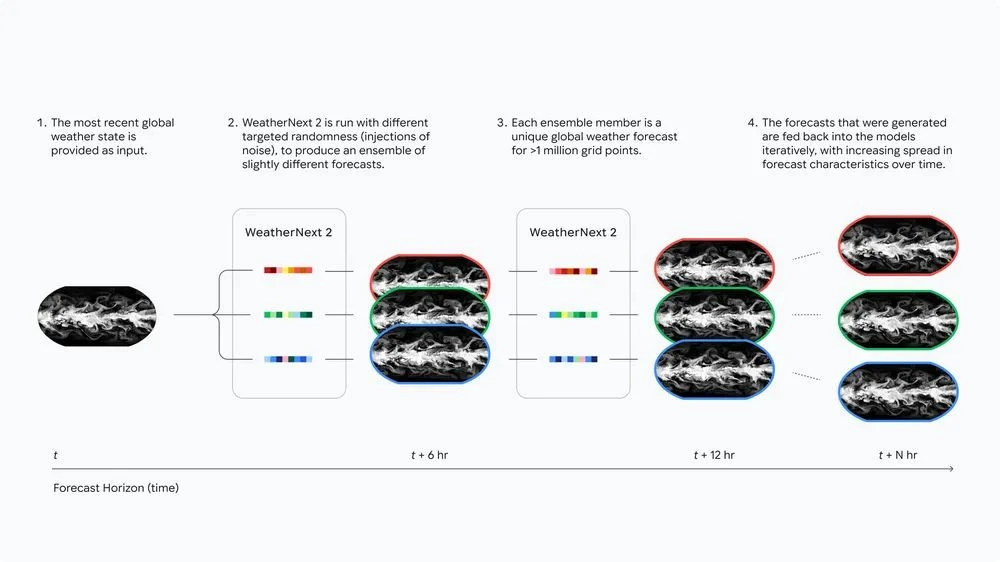 Ένα από τα σημαντικότερα επιτεύγματα του WeatherNext 2 είναι η ταχύτητα. Η νέα έκδοση μπορεί να παράγει ολοκληρωμένες προβλέψεις περίπου οκτώ φορές γρηγορότερα από τον προκάτοχό της. Αυτή η επιτάχυνση δεν έχει να κάνει μόνο με την τεχνολογική αναβάθμιση, αλλά και με μια εντελώς διαφορετική θεμελιώδη προσέγγιση στην κατασκευή του μοντέλου. Το επιστημονικό άρθρο που συνοδεύει την ανακοίνωση περιγράφει πώς τα παλαιότερα μοντέλα AI για πρόγνωση καιρού στηρίζονταν σε συστήματα σχεδιασμένα για παραγωγή εικόνων και βίντεο, απαιτώντας πολλαπλά βήματα επεξεργασίας για να επιτευχθεί η επιθυμητή ακρίβεια. Το WeatherNext 2, αντίθετα, βασίζεται σε μια τεχνική που επιτρέπει την ολοκλήρωση της πρόγνωσης με ένα και μόνο υπολογιστικό πέρασμα, μειώνοντας σημαντικά την ανάγκη για ακριβό υπολογιστικό hardware.