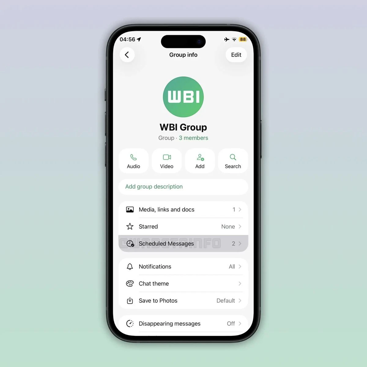 - Τοποθεσία μενού: Προστίθεται νέα καρτέλα "Scheduled Messages" στο μενού πληροφοριών της συνομιλίας (Chat Info), ακριβώς κάτω από τις επιλογές Πολυμέσων και Αγαπημένων μηνυμάτων.