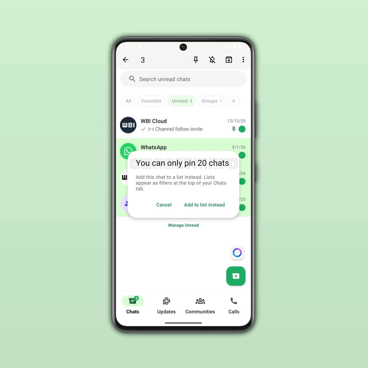 - Το όριο των καρφιτσωμένων συνομιλιών (pinned chats) αυξάνεται δραματικά από 3 σε 20.