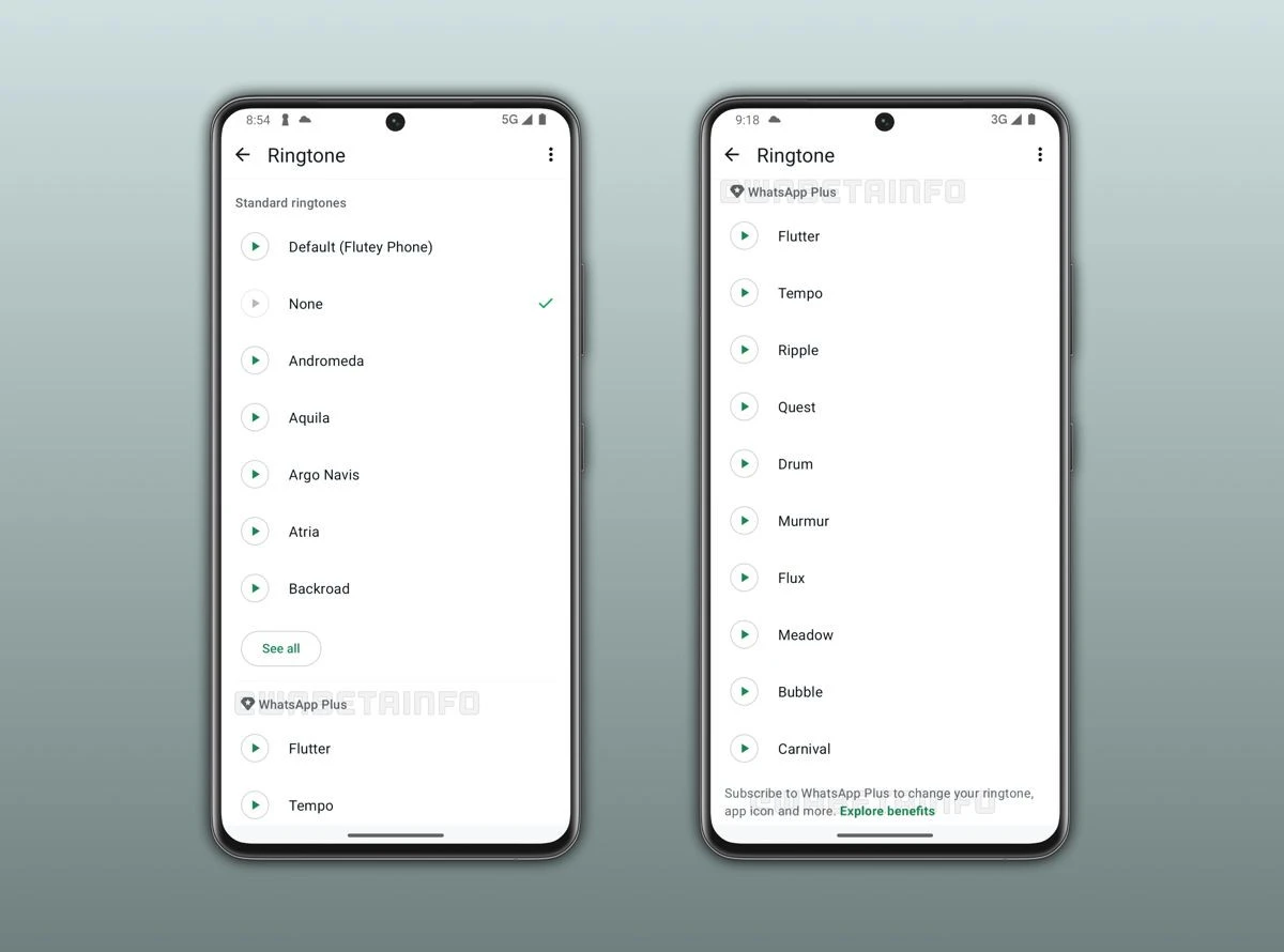 Στον τομέα των ειδοποιήσεων, η Meta ενσωματώνει 10 νέα, αποκλειστικά ringtones. Οι ήχοι αυτοί έχουν σχεδιαστεί ώστε να διαχωρίζουν άμεσα τις εισερχόμενες κλήσεις του WhatsApp από τις τυπικές κλήσεις του λειτουργικού συστήματος (iOS/Android). Σημειώνεται, ωστόσο, ότι τα premium ringtones προορίζονται αποκλειστικά για φωνητικές κλήσεις ή βιντεοκλήσεις και όχι για ειδοποιήσεις απλών μηνυμάτων κειμένου.