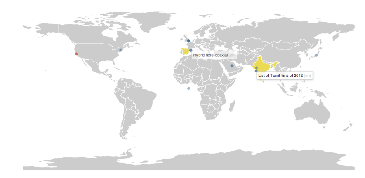 Κάθε φορά που κάποιος χρήστης προσθέτει ή επεξεργάζεται ένα άρθρο, ένα μικρό κυκλάκι που αναβοσβήνει εμφανίζεται στην τοποθεσία του στο χάρτη. Λίγο πιο κάτω βρίσκεται τοποθετημένο ένα text box που περιέχει περισσότερες πληροφορίες όπως link για το άρθρο, γλώσσα, πόλη και χώρα από όπου πραγματοποιήθηκε η αλλαγή.