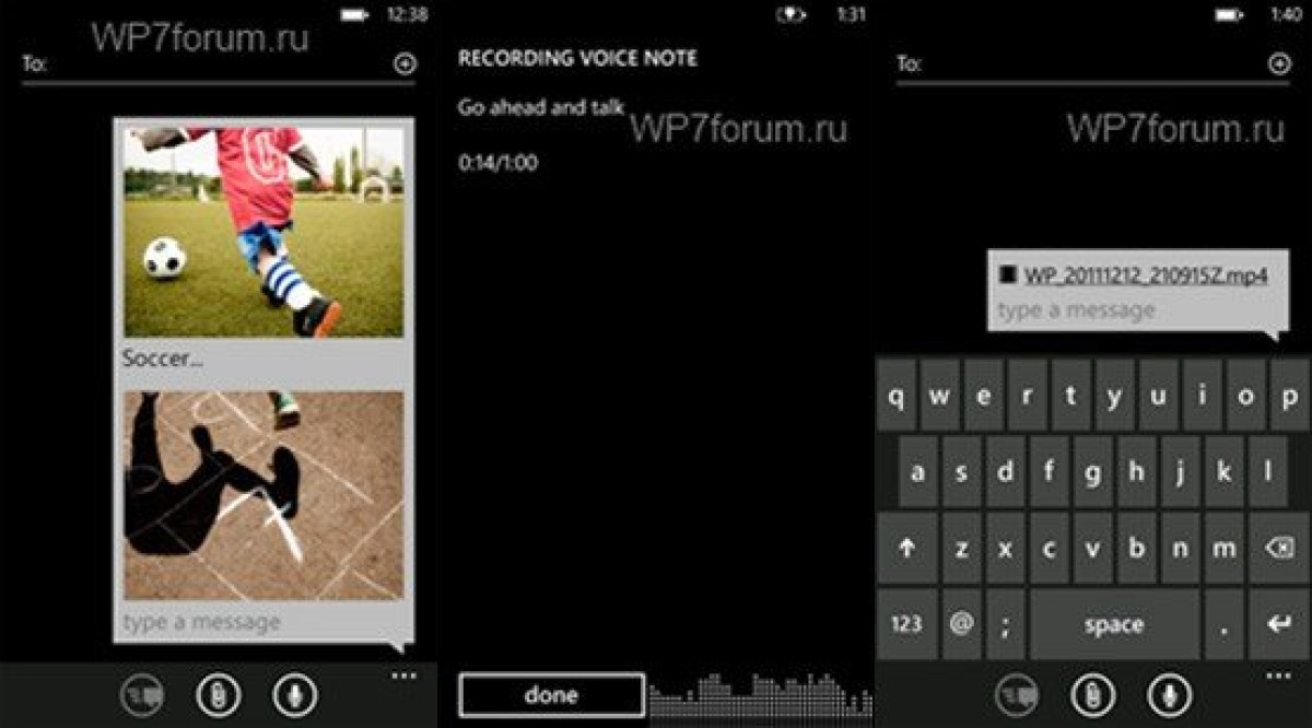 Ακόμη, οι απαιτήσεις για την κάμερα μειώνονται στα 3MP (αντί για 5MP), ενώ διακρίνεται η αποστολή MMS με δύο εικόνες (μέχρι τώρα το WP υποστηρίζει 1 εικόνα/MMS), καθώς και βελτιωμένη εφαρμογή voice recording για την πρόσθεση φωνητικών μηνυμάτων στα MMS.