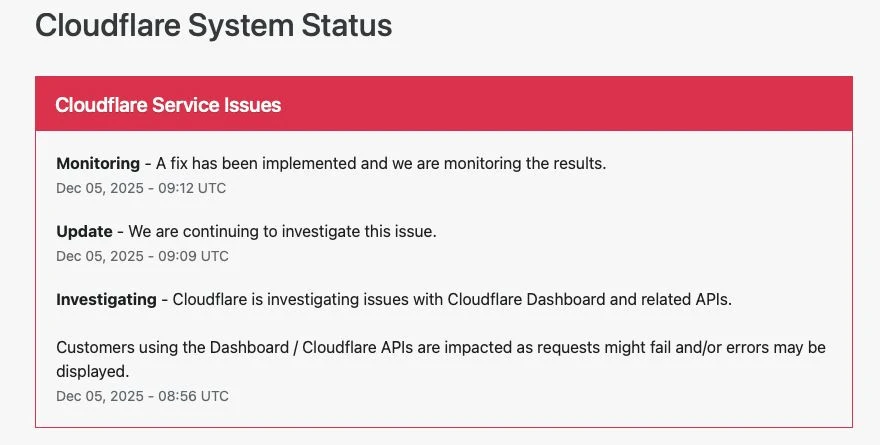 Μόλις δύο εβδομάδες πέρασαν μετά το τεράστιο outage της Cloudflare και φαίνεται ότι τα προβλήματα επέστρεψαν. Εδώ και λίγη ώρα έχουμε παρατηρήσει ότι δεν είναι προσβάσιμες πολλές ιστοσελίδες και μάλιστα ούτε καν το DownDetector που... ενημερώνει αν υπάρχουν προβλήματα.